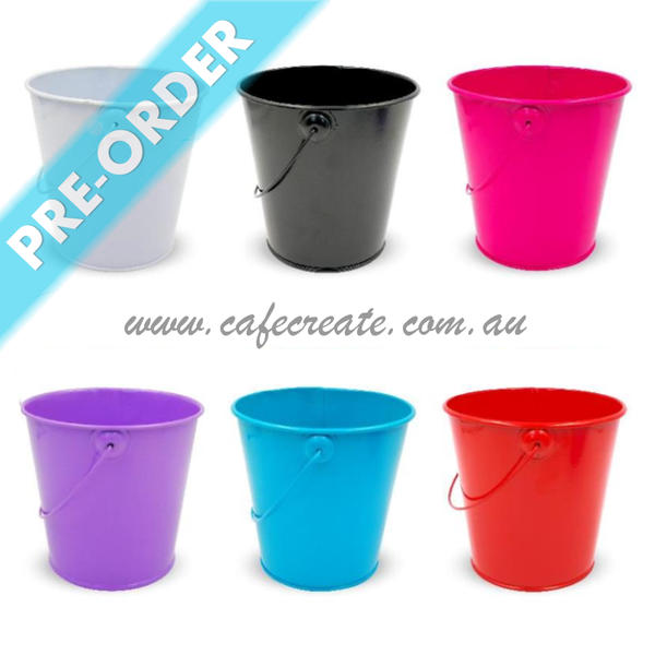 24 Beautiful plain bright tin buckets.Â
