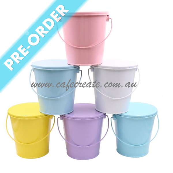 24 Beautiful Pastel Shades tin buckets WITH LIDS .